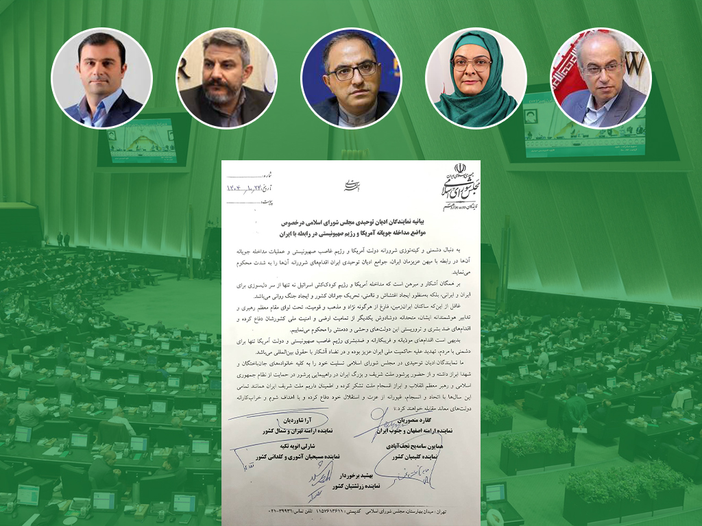 به دنبال دشمین و کینه‌توزی شرورانه دولت آمریکا و رژیم غاصب صهیونیستی و عملیات مداخله‌جویانه آن‌ها در رابطه با میهن عزیزمان ایران، جوامع ادیان توحیدی ایران اقدام‌های شرورانه آن‌ها را به شدت محکوم می‌نماید.